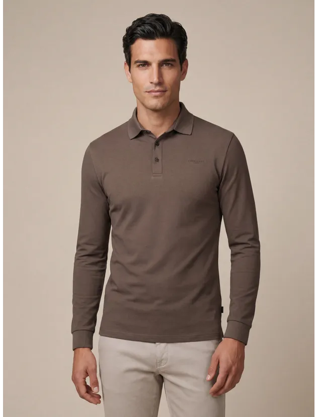 Basso Polo Lange Mouw 116261015 Kleur 880000 Dark Taupe