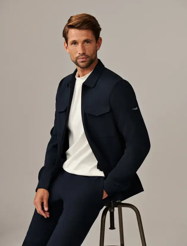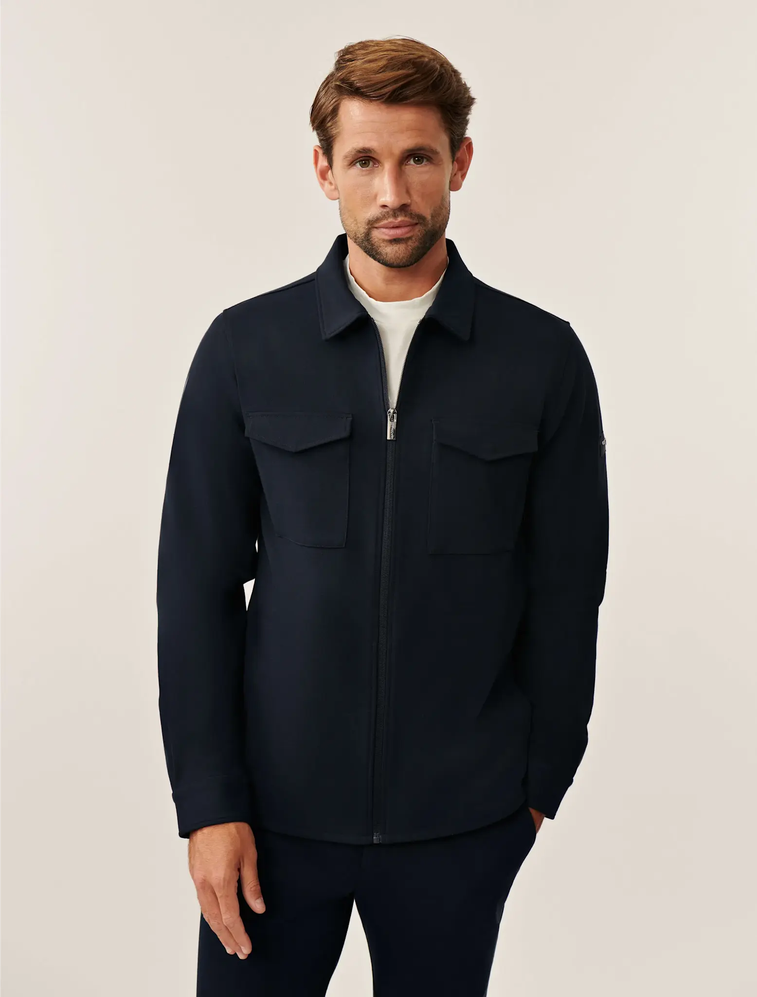 Het Zerino Overshirt is dé perfecte combinatie van stijl en functionaliteit, en niet voor niets een echte bestseller. Dit donkerblauwe overshirt heeft een regular fit en is gemaakt van een hoogwaardige blend van bamboe en elastaan, wat zorgt voor ultiem draagcomfort en een luxe uitstraling. De details maken het verschil: een ton-sur-ton logobadge op de mouw, een ton-sur-ton ritssluiting, opgestikte klepzakken met blinde sluiting en steekzakken met ademende meshvoering. Dankzij het tijdloze ontwerp en de veelzijdige look draag je het Zerino overshirt moeiteloos naar zowel casual als meer geklede gelegenheden.