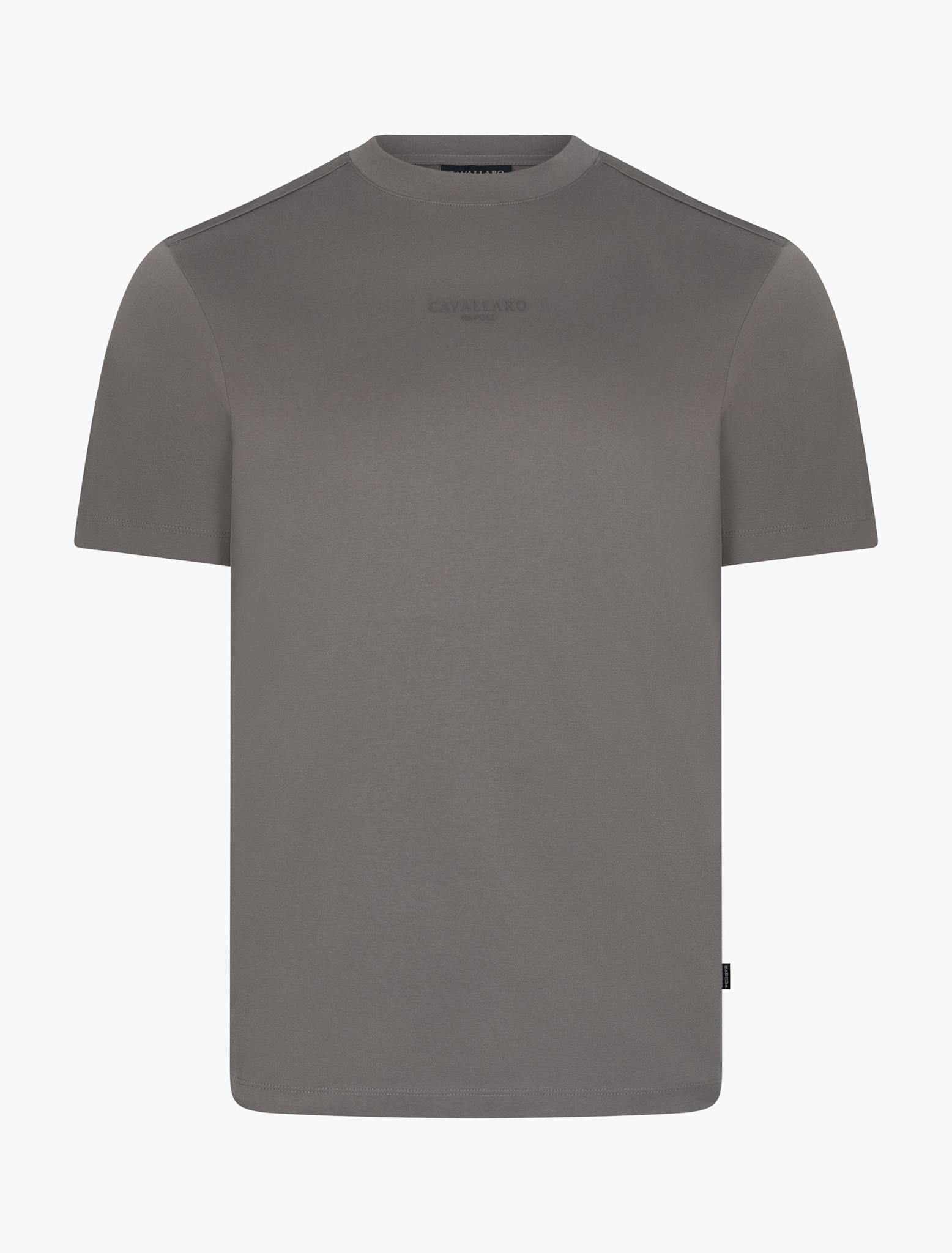 Ontdek het Luvati T-shirt, een stijlvolle toevoeging aan je garderobe voor het voorjaar en de zomer van 2026. Dit faded grey T-shirt is vervaardigd uit 100% gemerceriseerd katoen, wat zorgt voor een iets zwaardere kwaliteit, een zachte touch en een subtiele glans. De comfortabele loose fit, ronde hals en korte mouwen maken het T-shirt ideaal voor een casual en moderne look. Het ton-sur-ton logo op de borst geeft een verfijnde finishing touch. Een veelzijdige basic met de kenmerkende kwaliteit van Cavallaro Napoli.