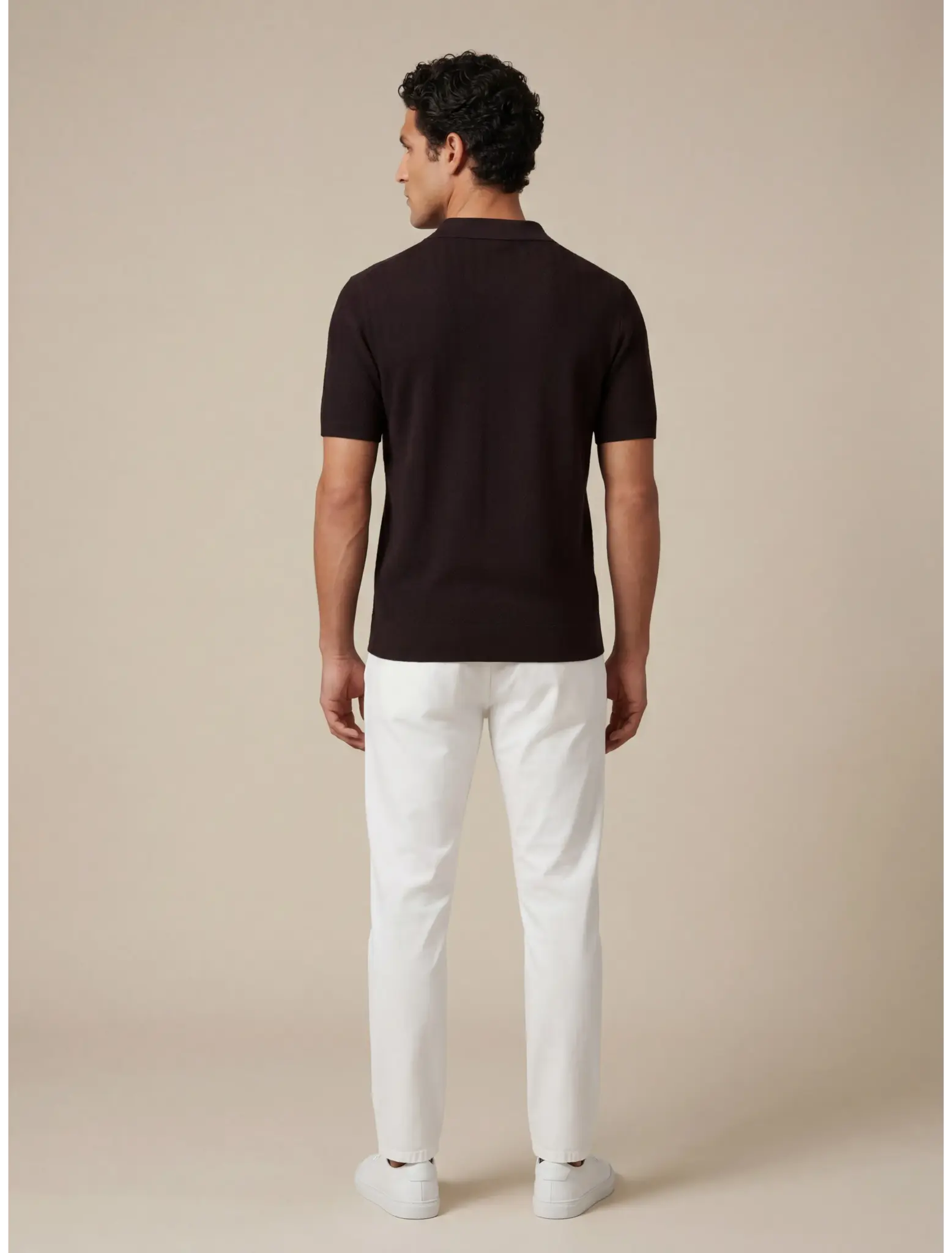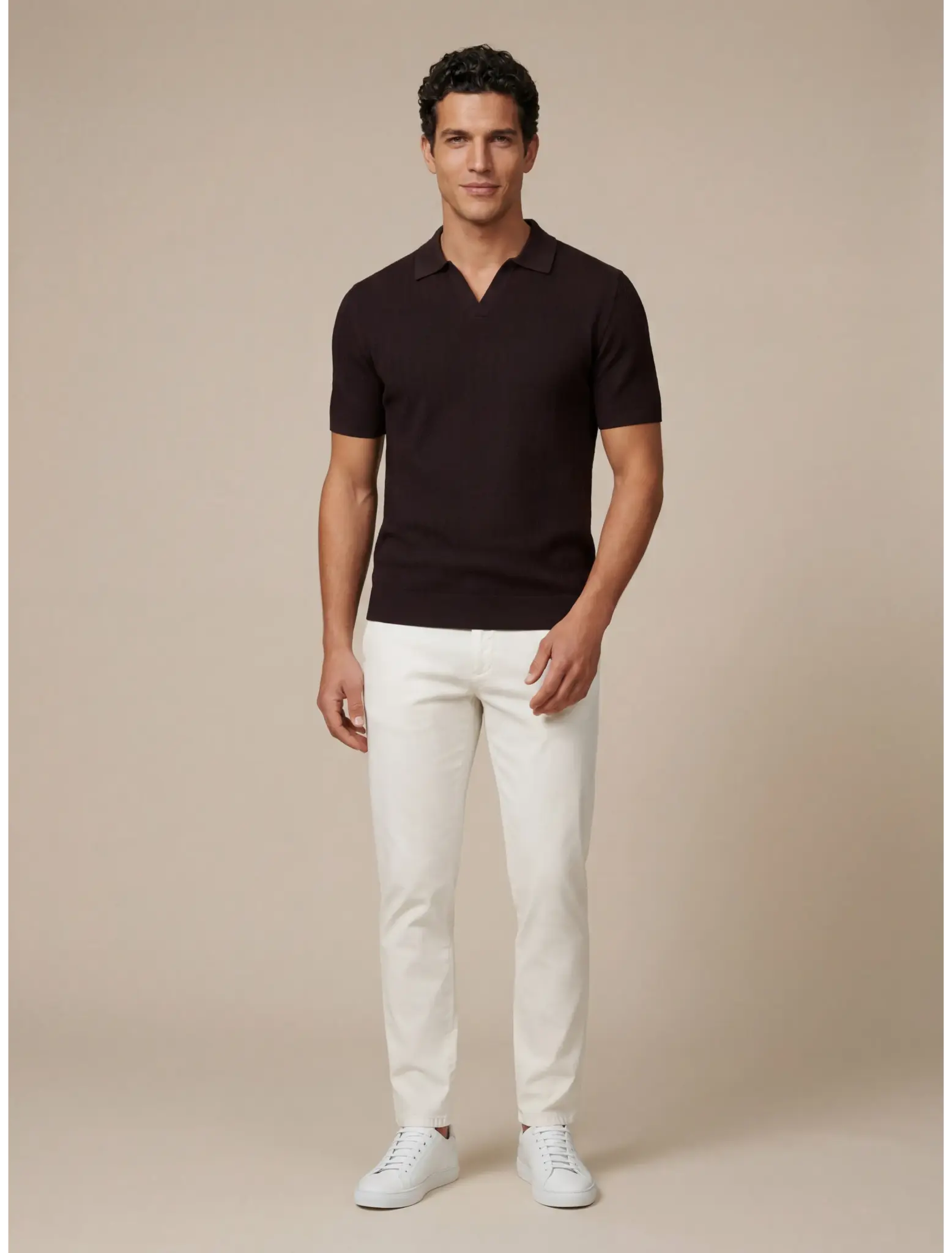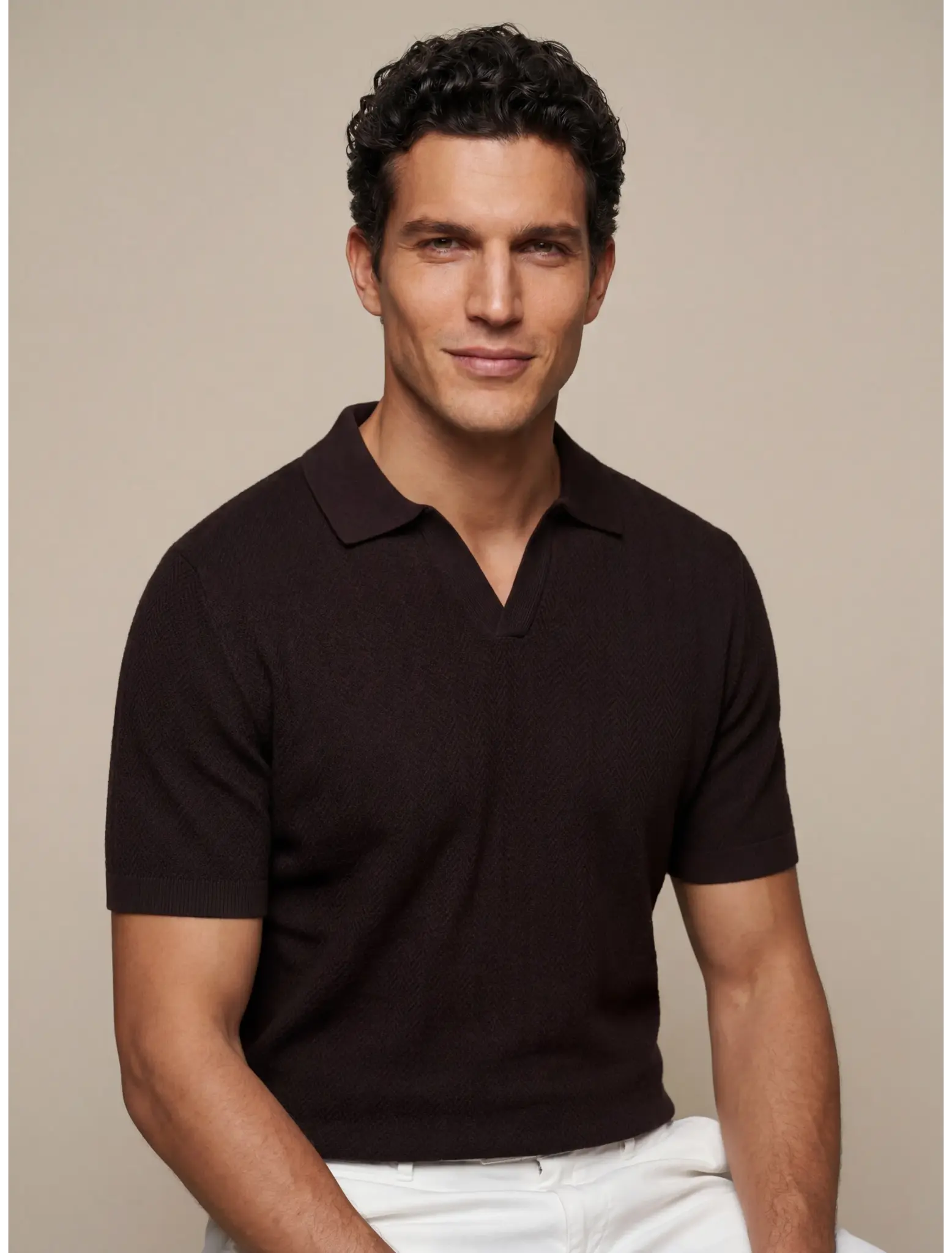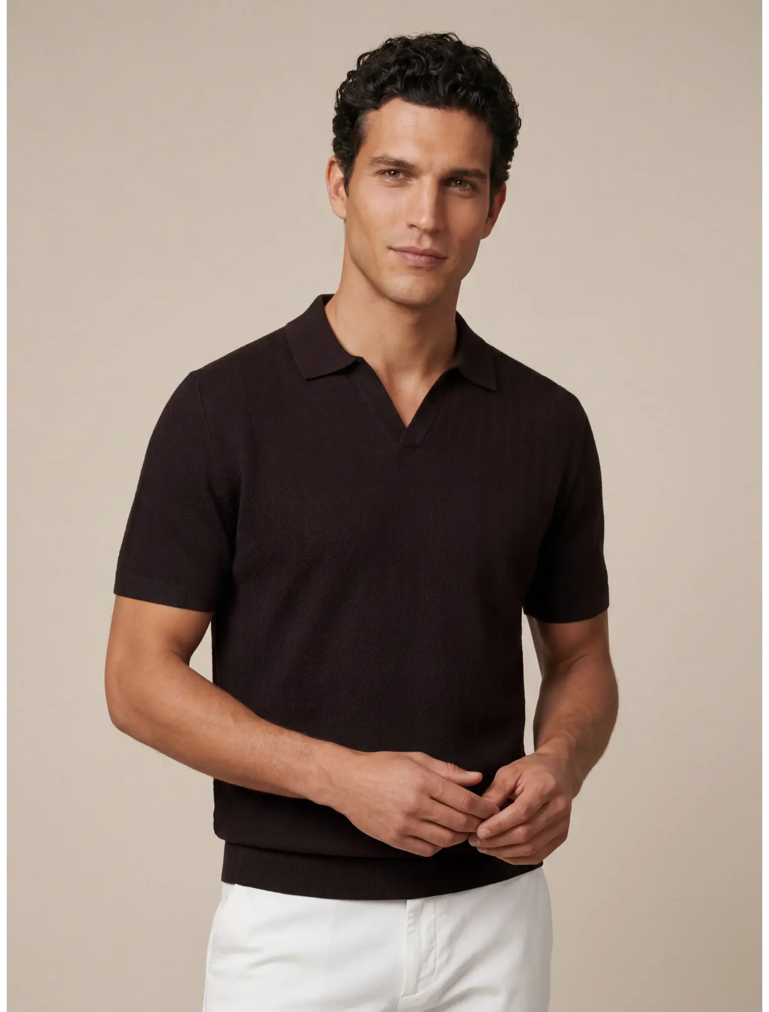 Ontdek de Mironi polo, een onmisbaar item voor de stijlvolle man. Deze donkerbruine polo uit de Spring/Summer 2026 collectie is gemaakt van hoogwaardige viscose met een verfijnde visgraat weving. De regular fit en korte mouwen zorgen voor een comfortabele, klassieke look, terwijl de polokraag met V-hals en subtiele details de exclusieve stijl van Cavallaro Napoli benadrukken. De Mironi Polo combineert moeiteloos luxe, comfort en Italiaanse klasse – perfect voor elke gelegenheid.