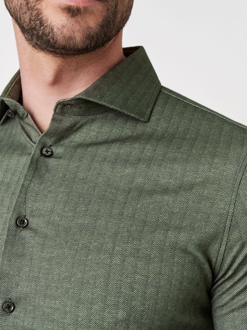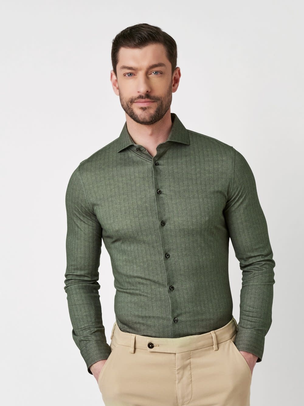 Overhemd Herringbone Luxury Line Knitted 87508-30 col 620 Groen
