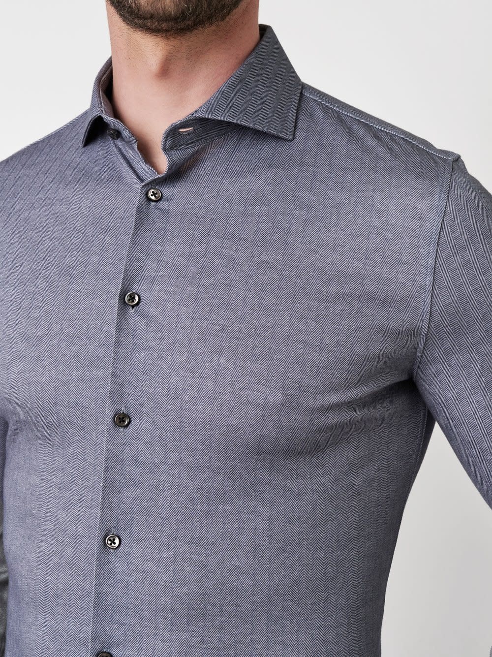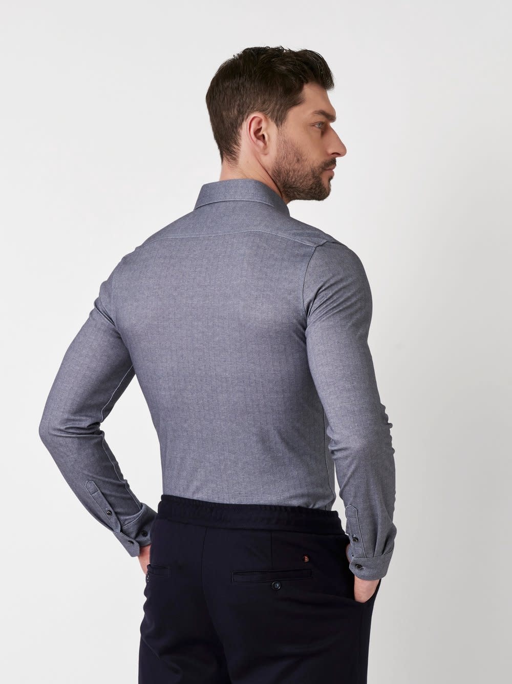 Overhemd Herringbone Luxury Line Knitted 87508-30 col 720 Grijs-Blauw
