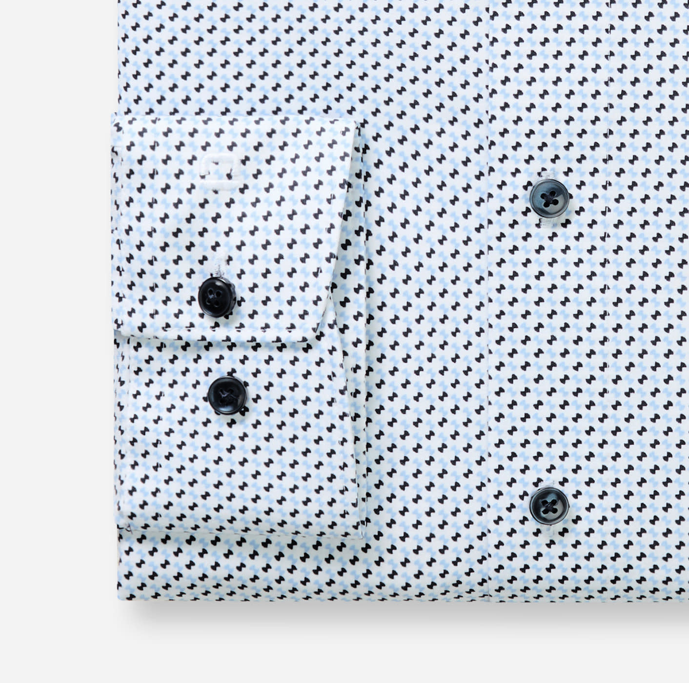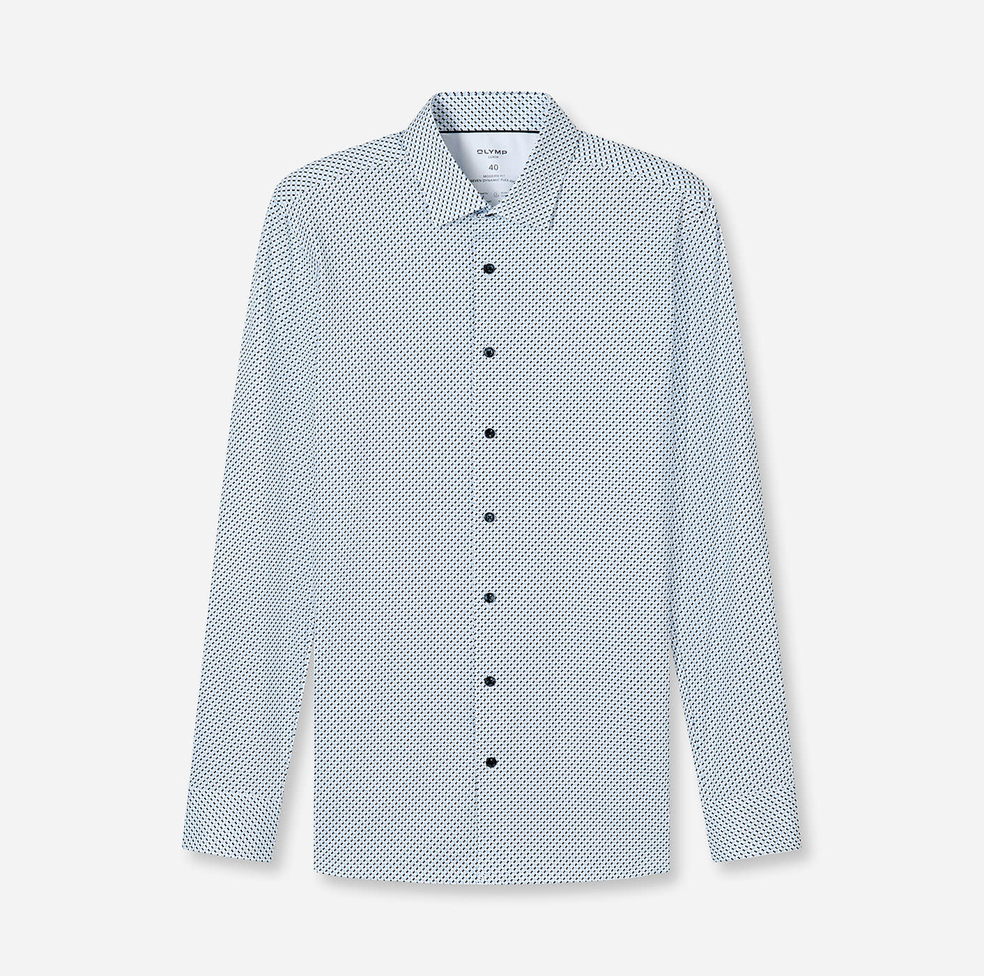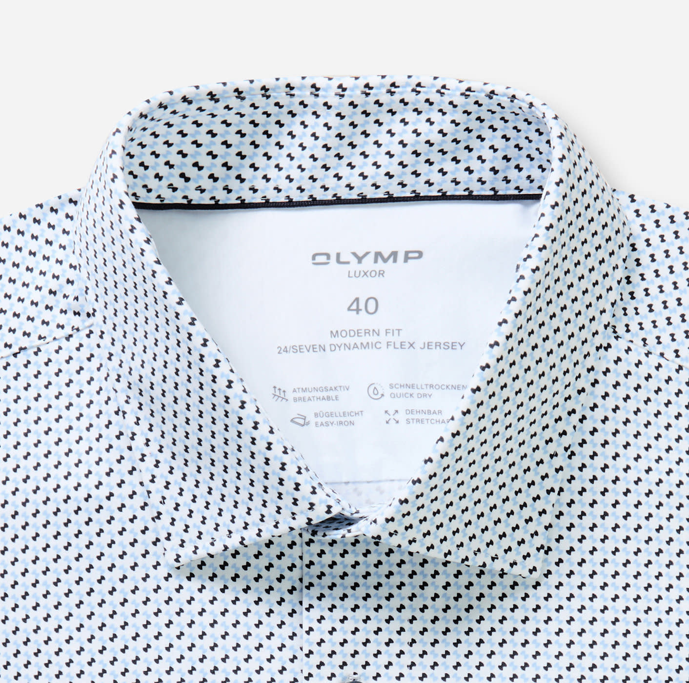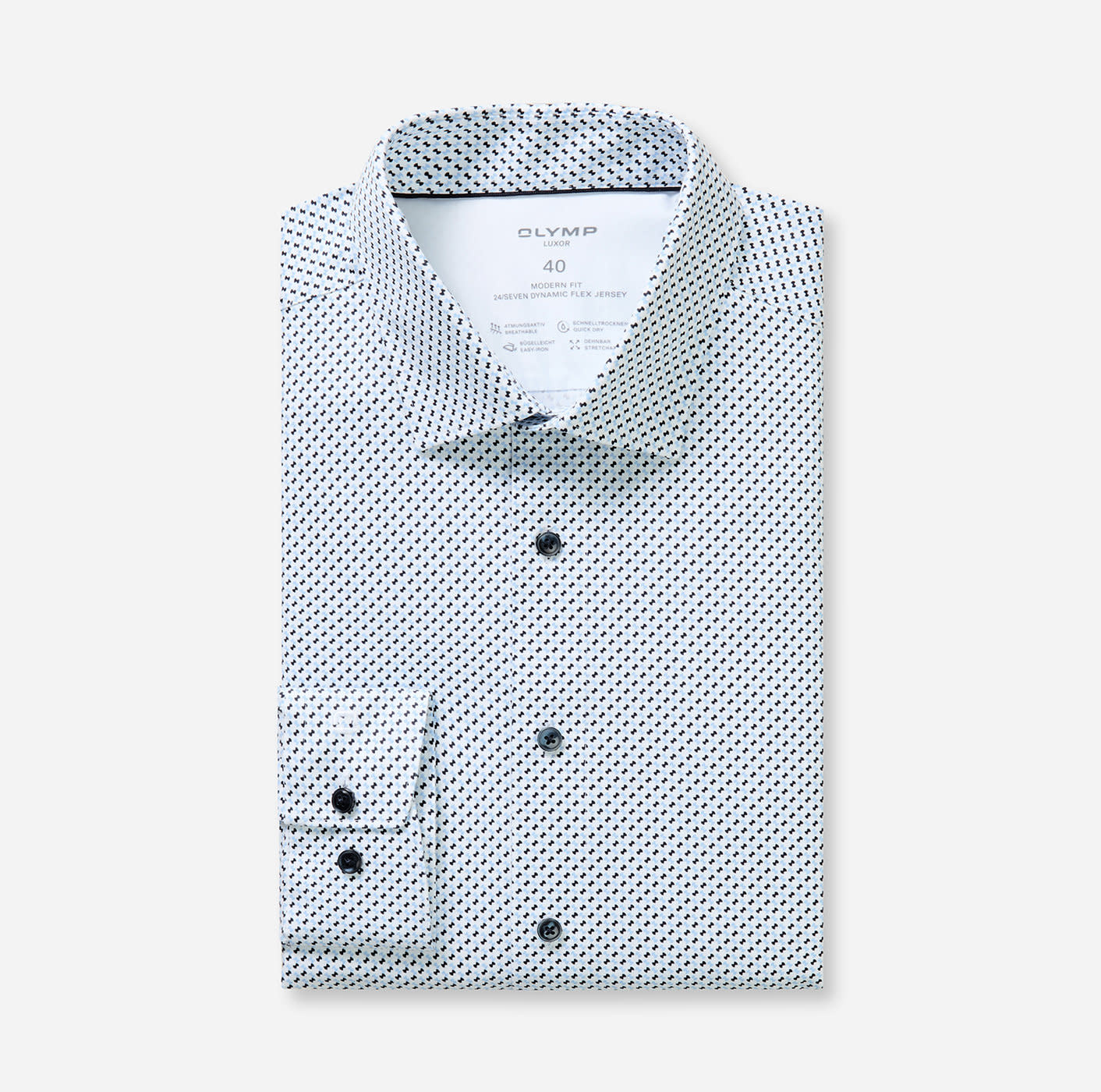 Altijd in persoonlijke topvorm: deze innovatieve OLYMP Luxor 24/Seven combineert het comfort van een T-shirt met de scherpe uitstraling van een businessoverhemd. De gladde textuur van de Dynamic Flex-jersey is ademend, sneldrogend, rekbaar en gemakkelijk te strijken. Met een nette new-kentkraag en sportieve pasvorm.