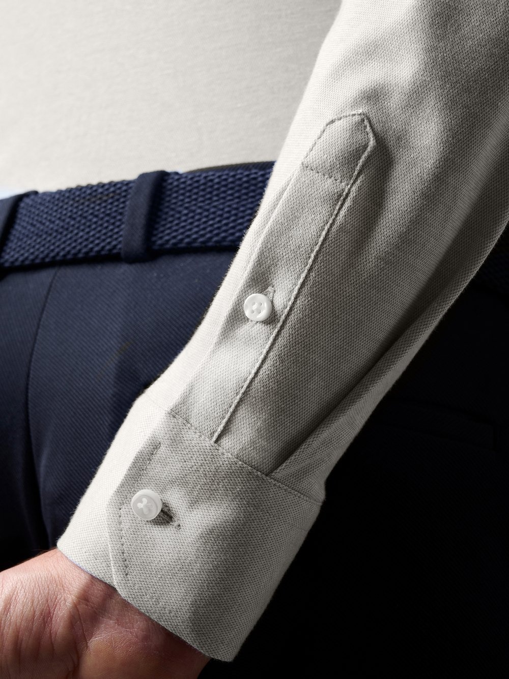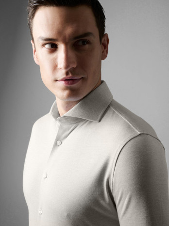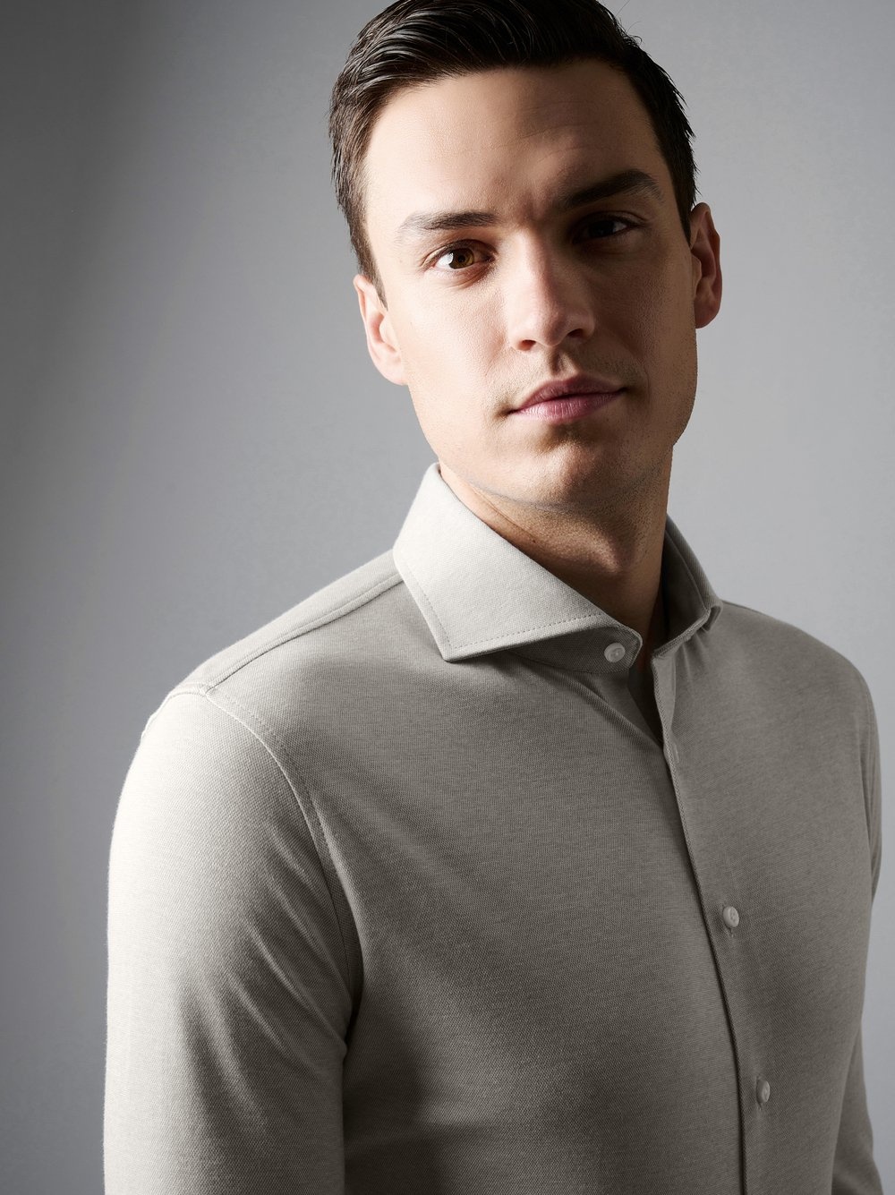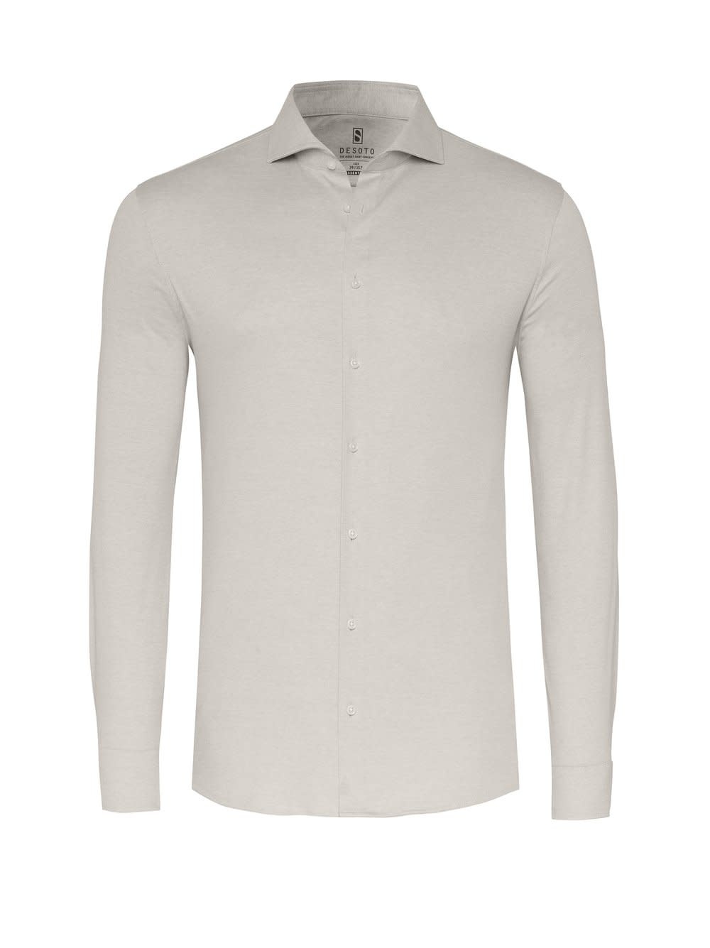 Dit Desoto beige Essential Hai overhemd combineert de elegantie van een overhemd met het comfort van een t-shirt. Een overhemd dat zowel formeel als casual gedragen kan worden. Volledig strijkvrij doordat het gemaakt is van een gebreide stof. 100% katoen en slim fit.
