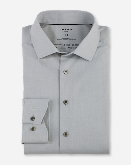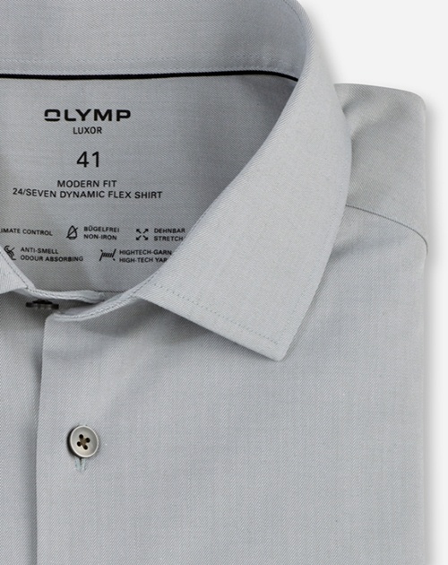 De innovatieve OLYMP Luxor 24/7 Climate Control is gemaakt van stevige keperstof van een zeer efficiënte vezelmix. Het is ademend, sneldrogend, elastisch, vocht- en temperatuurregulerend, onderhoudsvriendelijk en strijkvrij. Met een perfecte nauwsluitende vormvastheid en fijne diagonale structuur.