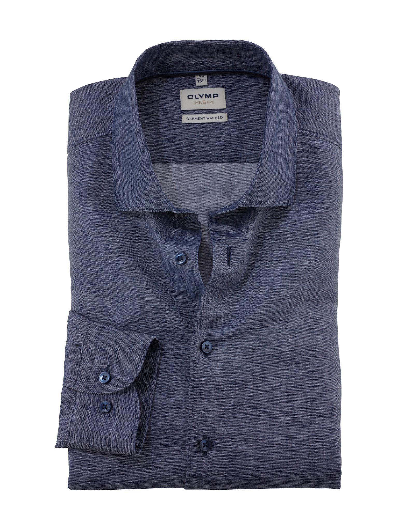 Level Five garment-washed Zakelijk overhemd, body fit, Kent, blauw.