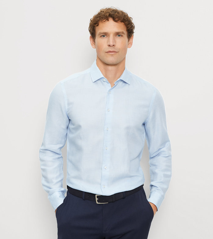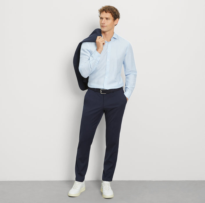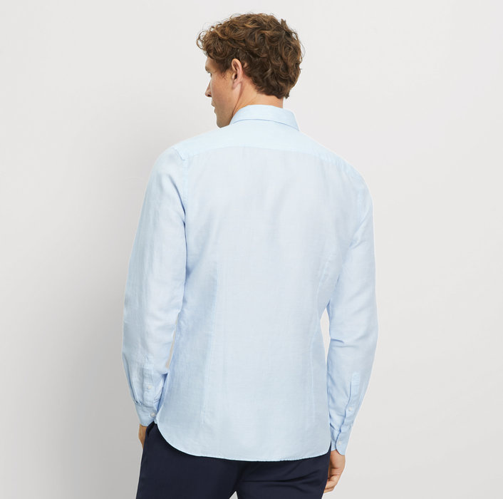Overhemd Linnen Blauw Garment Washed Body-Fit 2192 74 18