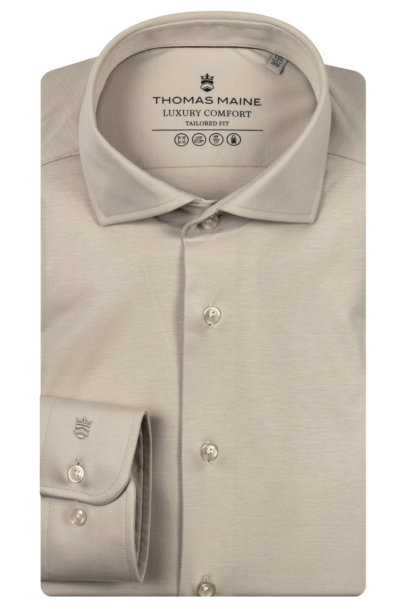 Een tijdloos overhemd dat moeiteloos formeel en casual combineert. Dankzij de luxe Liquid Cotton Solid-jersey stof met stretch zit hij comfortabel en beweeglijk, terwijl de tailored fit de figuur elegant omkadert. De subtiele melange en Kent-kraag maken ‘m veelzijdig: perfect onder een jasje maar ook stijlvol met jeans of chino. Kortom: een shirts dat klasse uitstraalt zonder in te boeten aan draagcomfort.