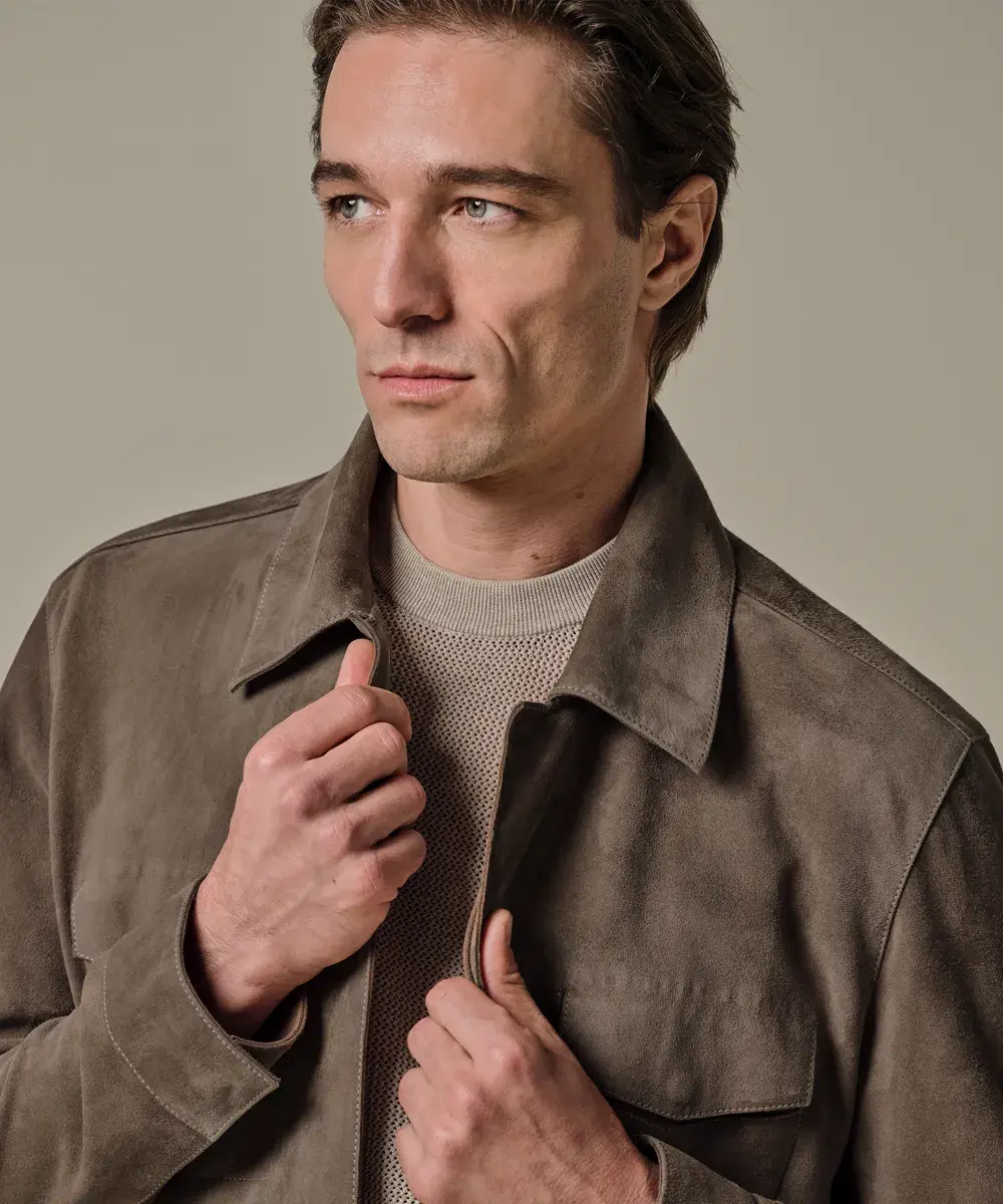Lichtbruine suede jas