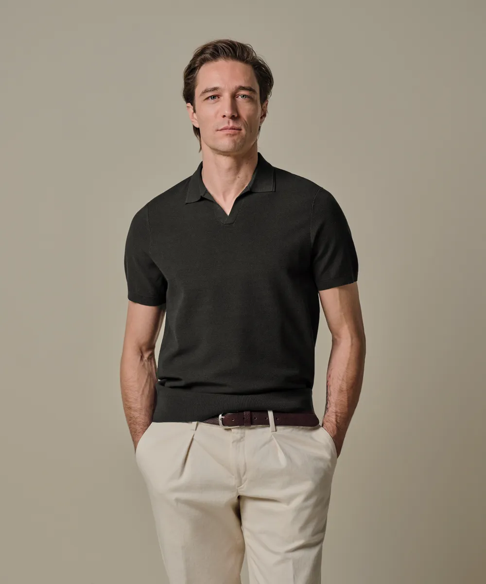 Polo Donkerbruin Luxury Basic Open Collar PPXD10009C