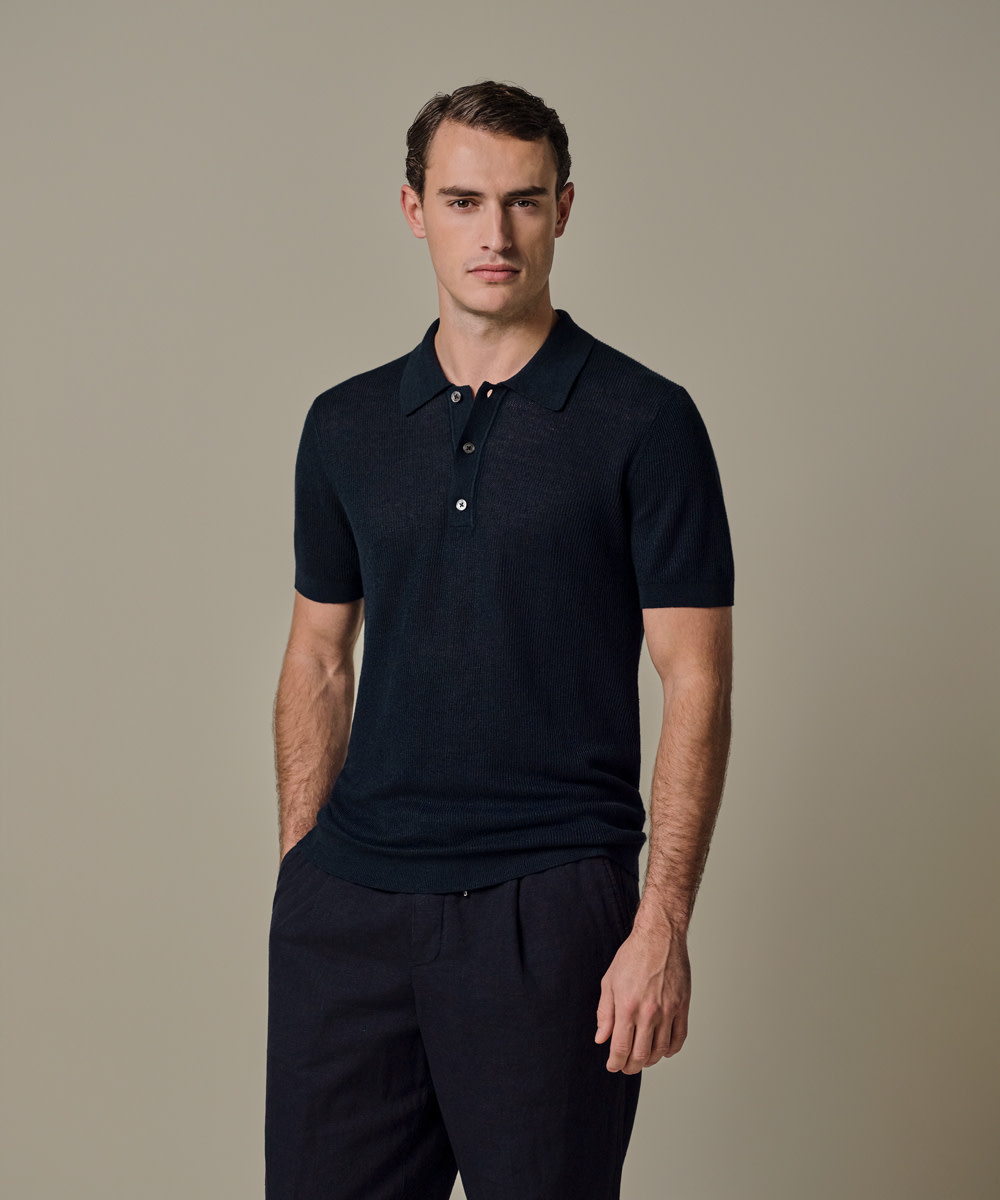 Polo Korte Mouw Linnen Blend Navy PPXD10017A