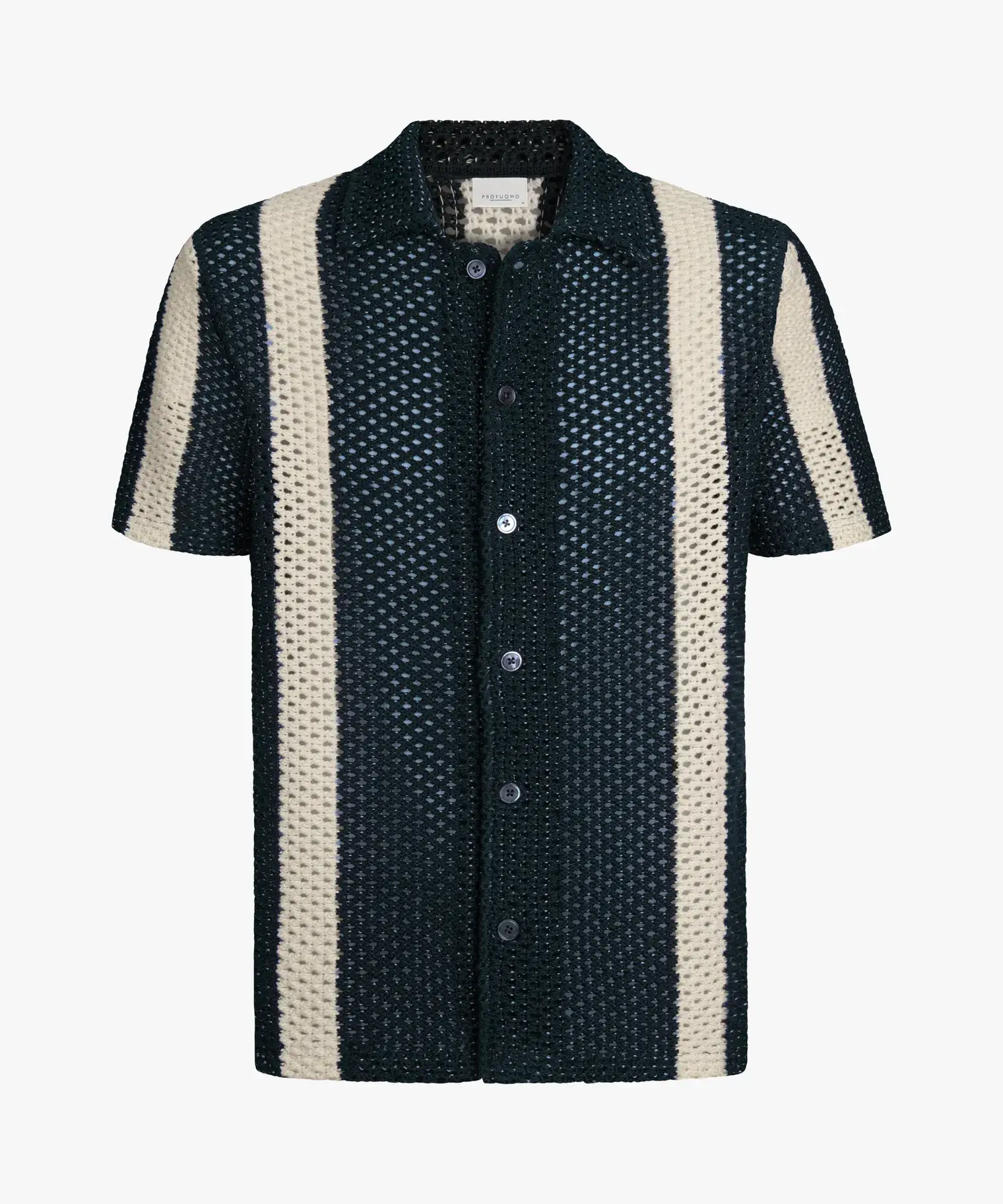 Profuomo Poloshirt Korte Mouw Navy Crochet Button Through PPXD10022A