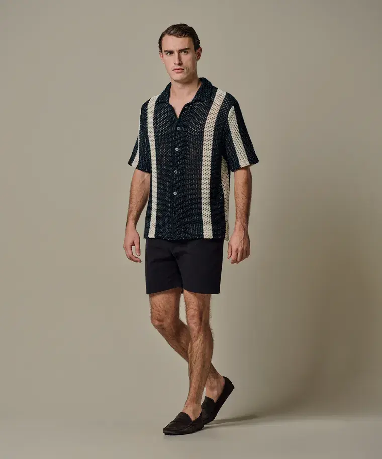 Navy crochet button through polo