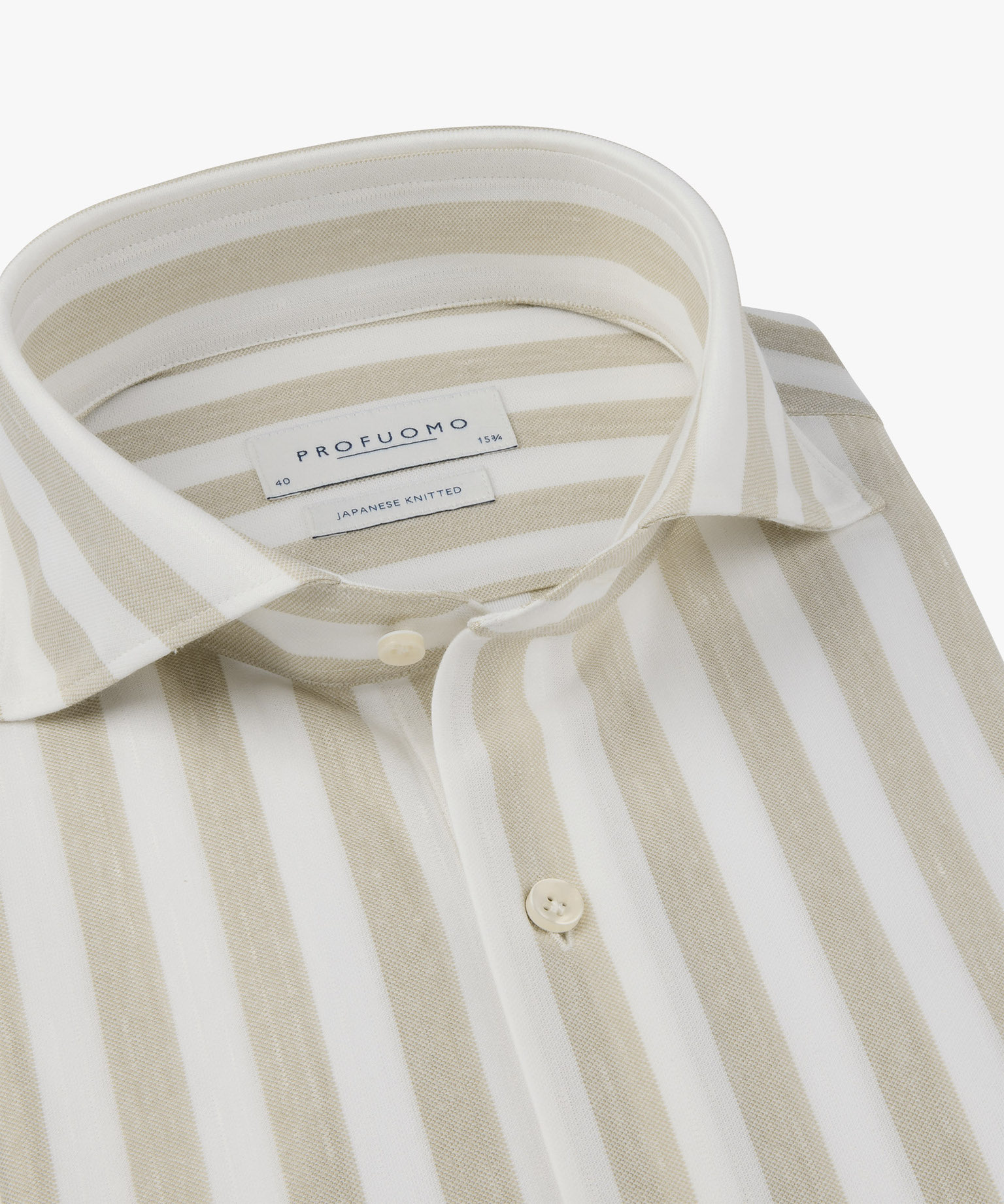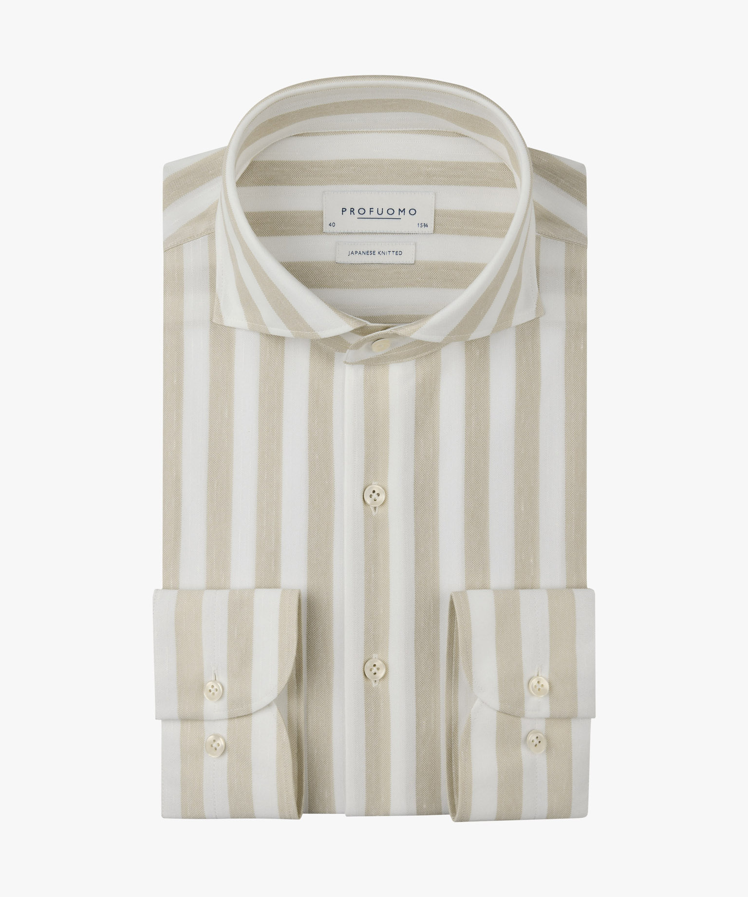 Overhemd Japanese Knitted Balk Streep Beige PPXH10035A