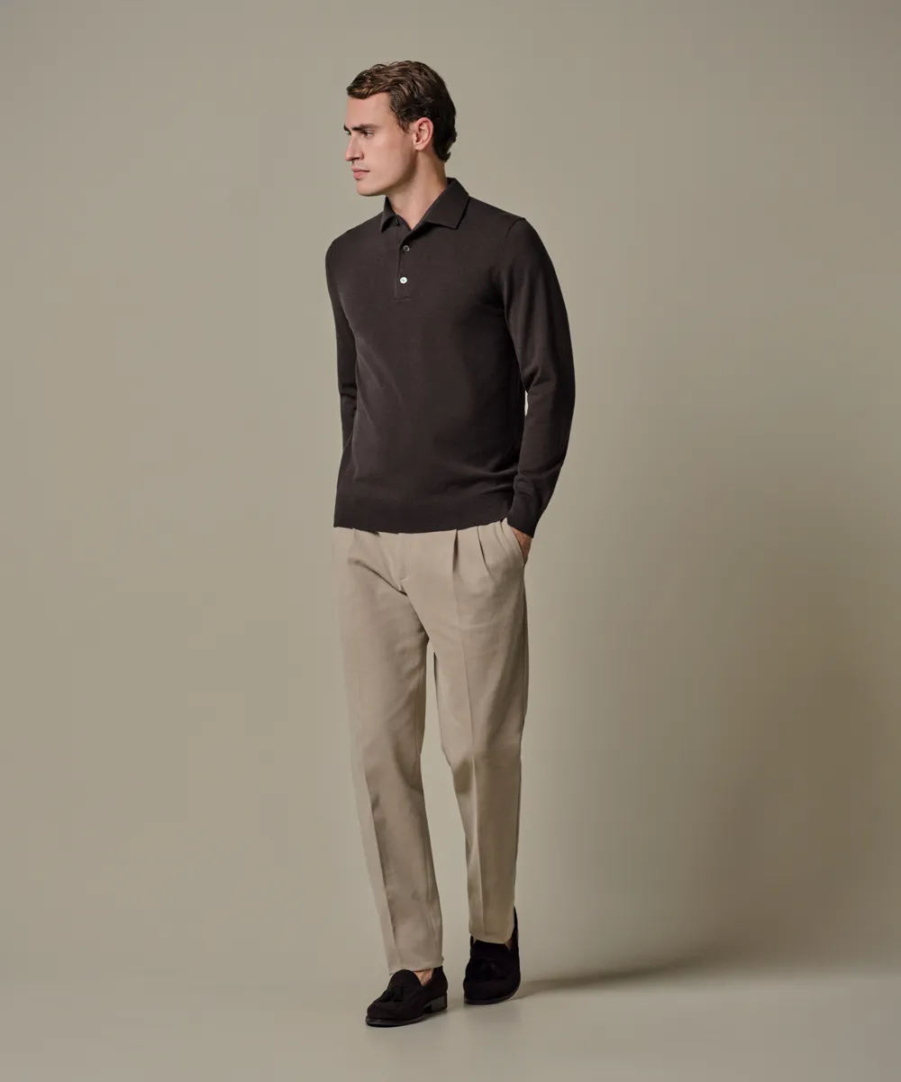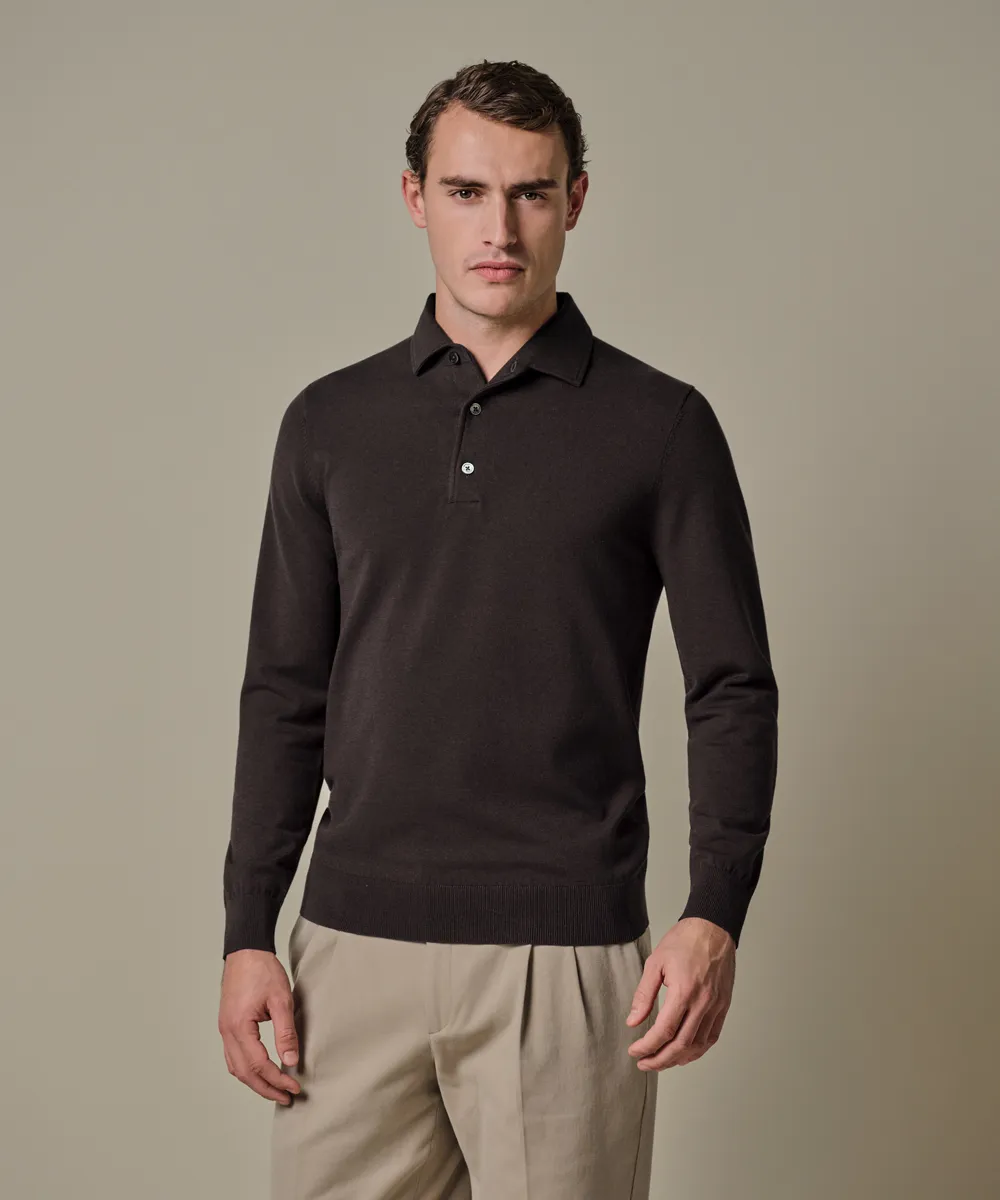 Polo Longsleeve Donkerbruin One Piece Luxury Basic PPXJ10005A