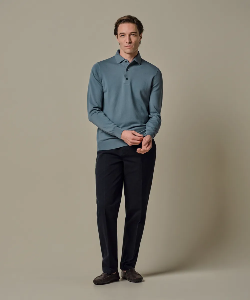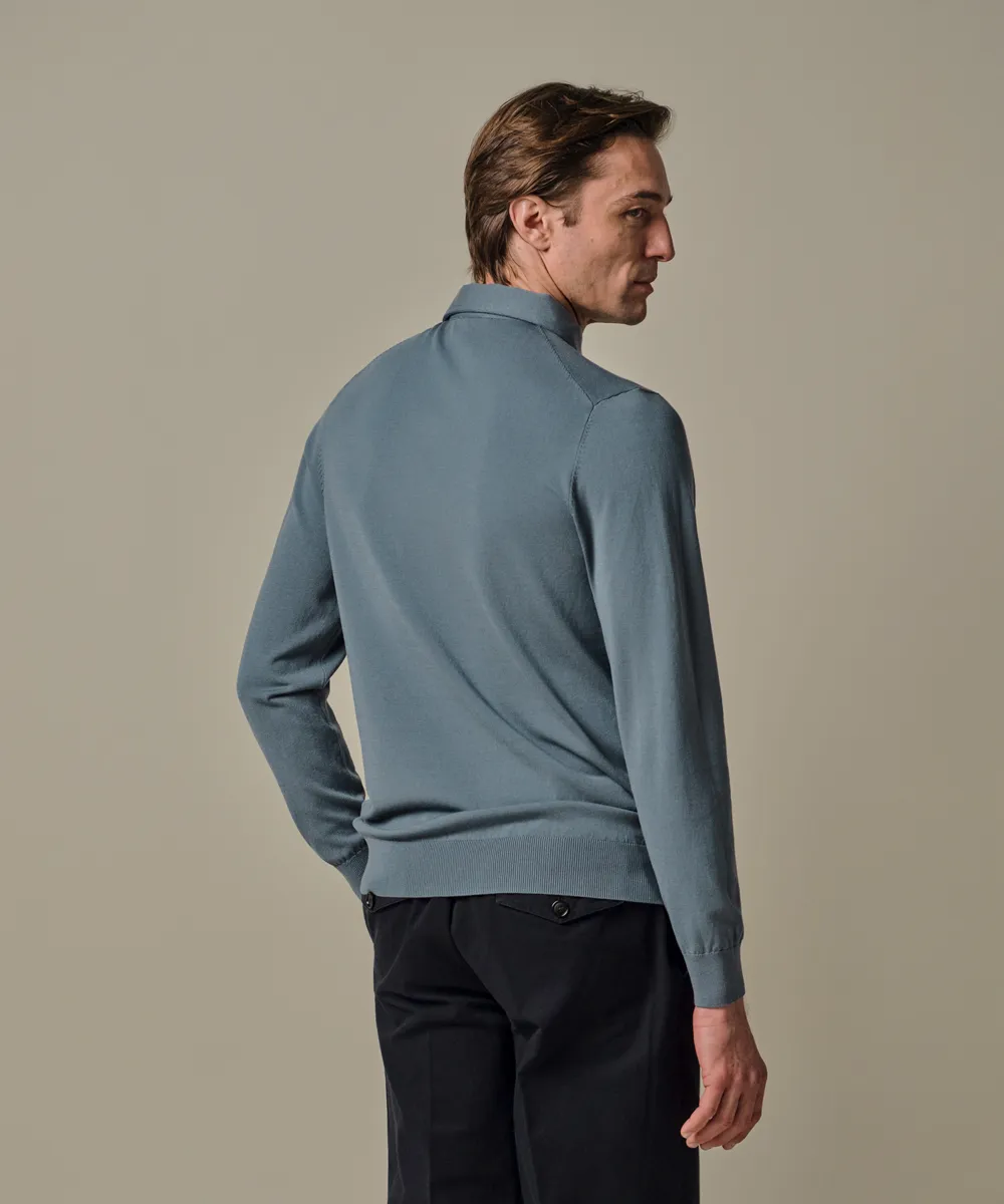 Polo Longsleeve Grijsblauw One Piece Luxury Basic PPXJ10005F