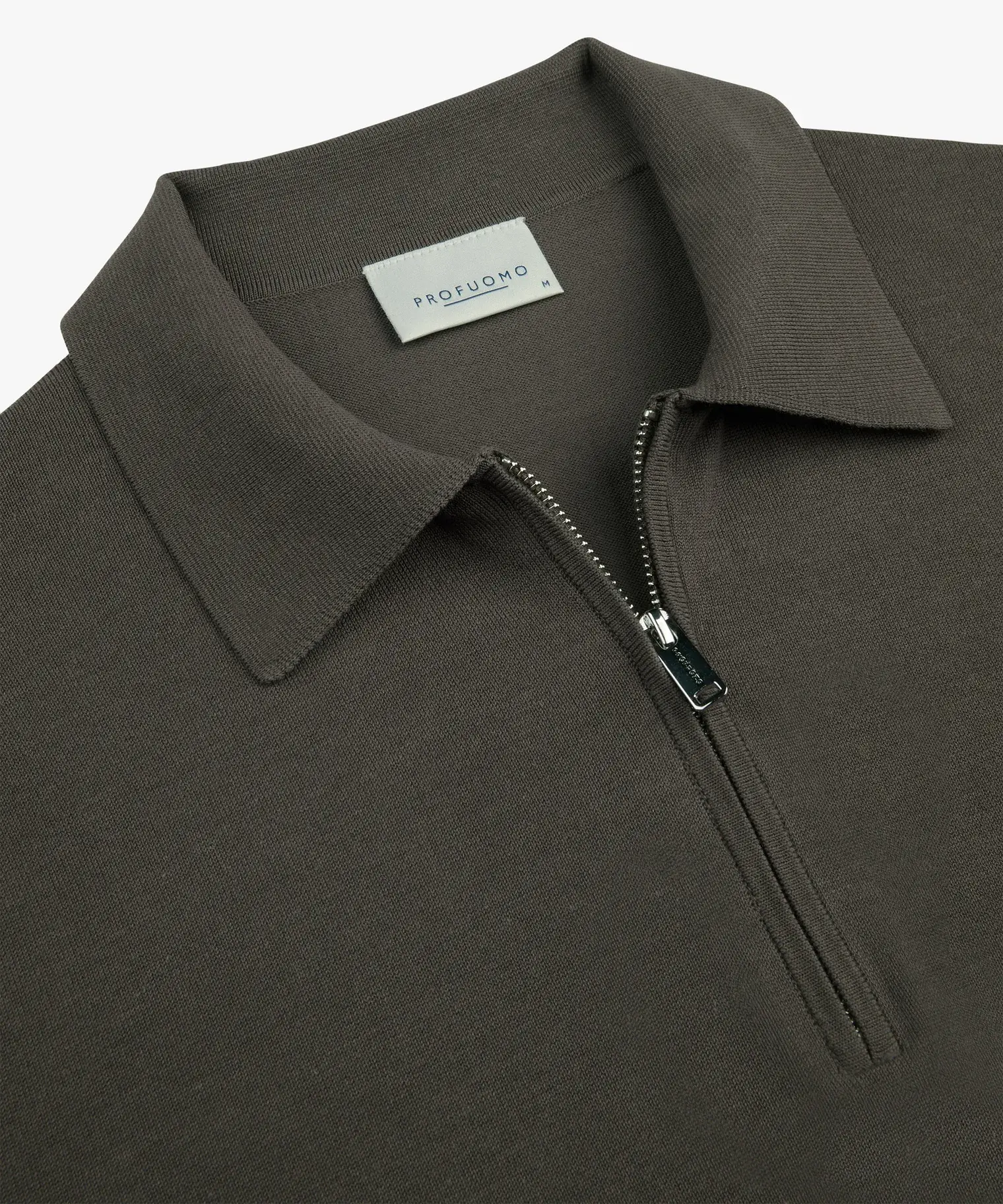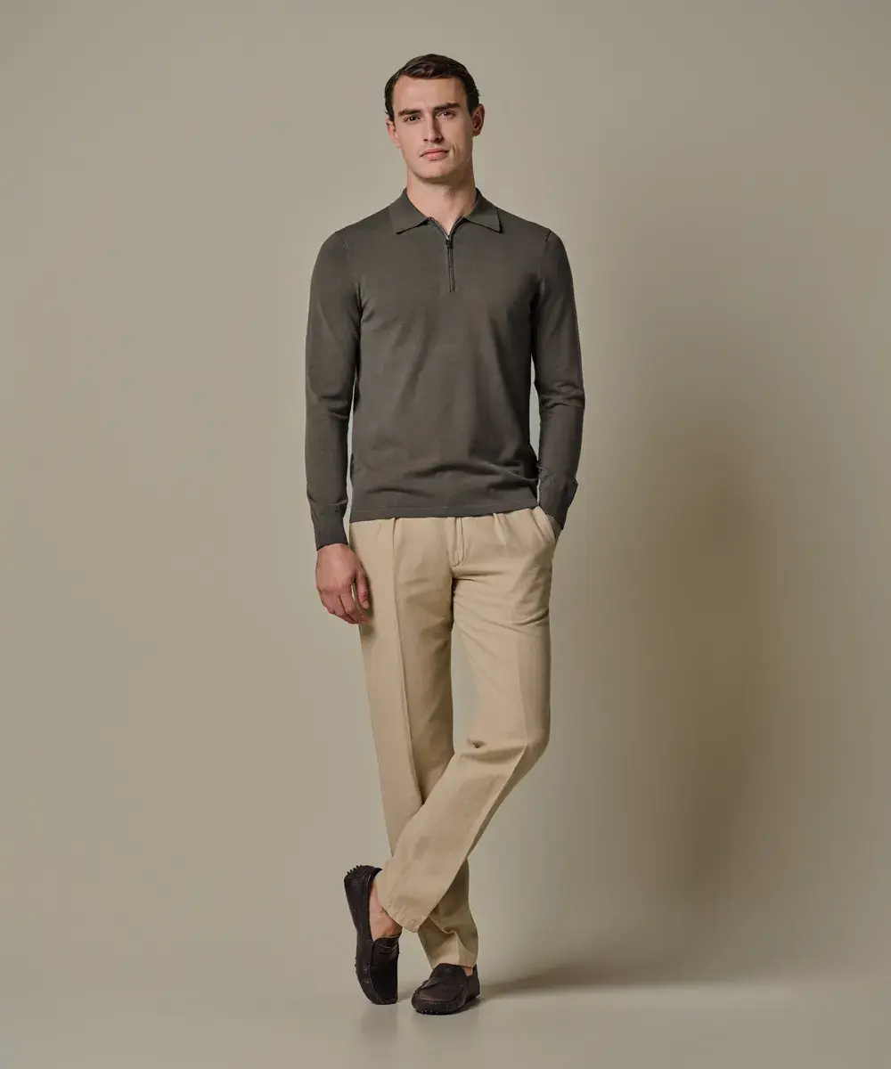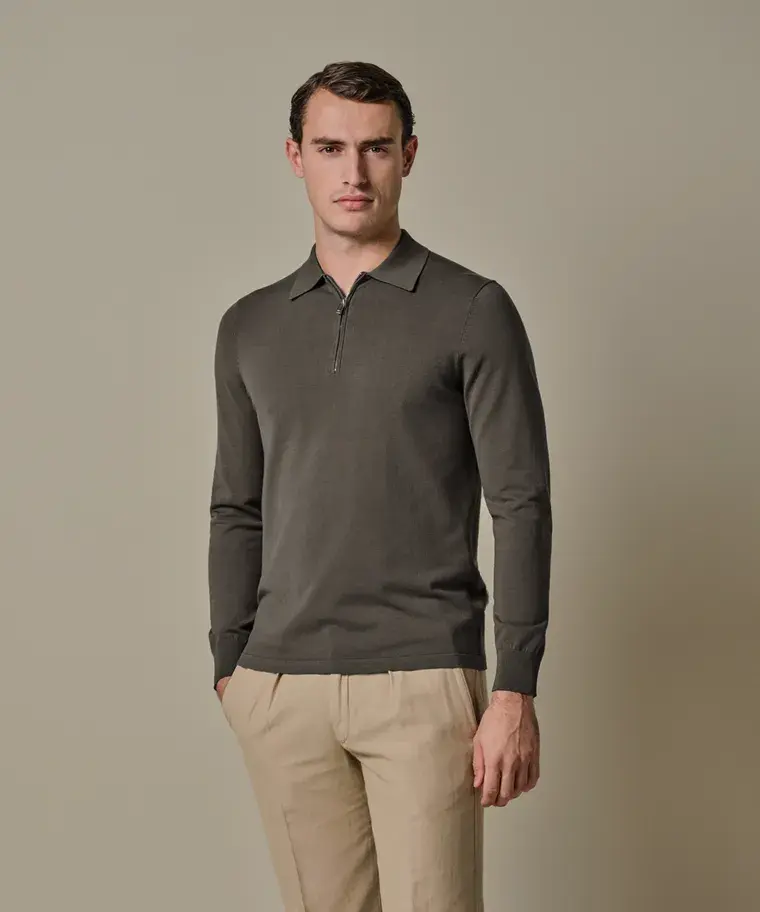 Polo Longsleeve Bruin Luxury Basic Half Zip PPXJ10006F