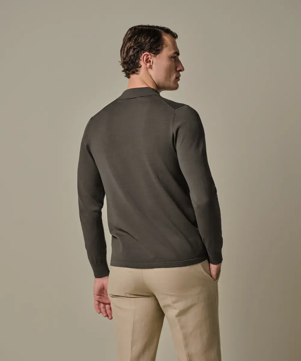 Polo Longsleeve Donkerbruin One Piece Luxury Basic PPXJ10005A