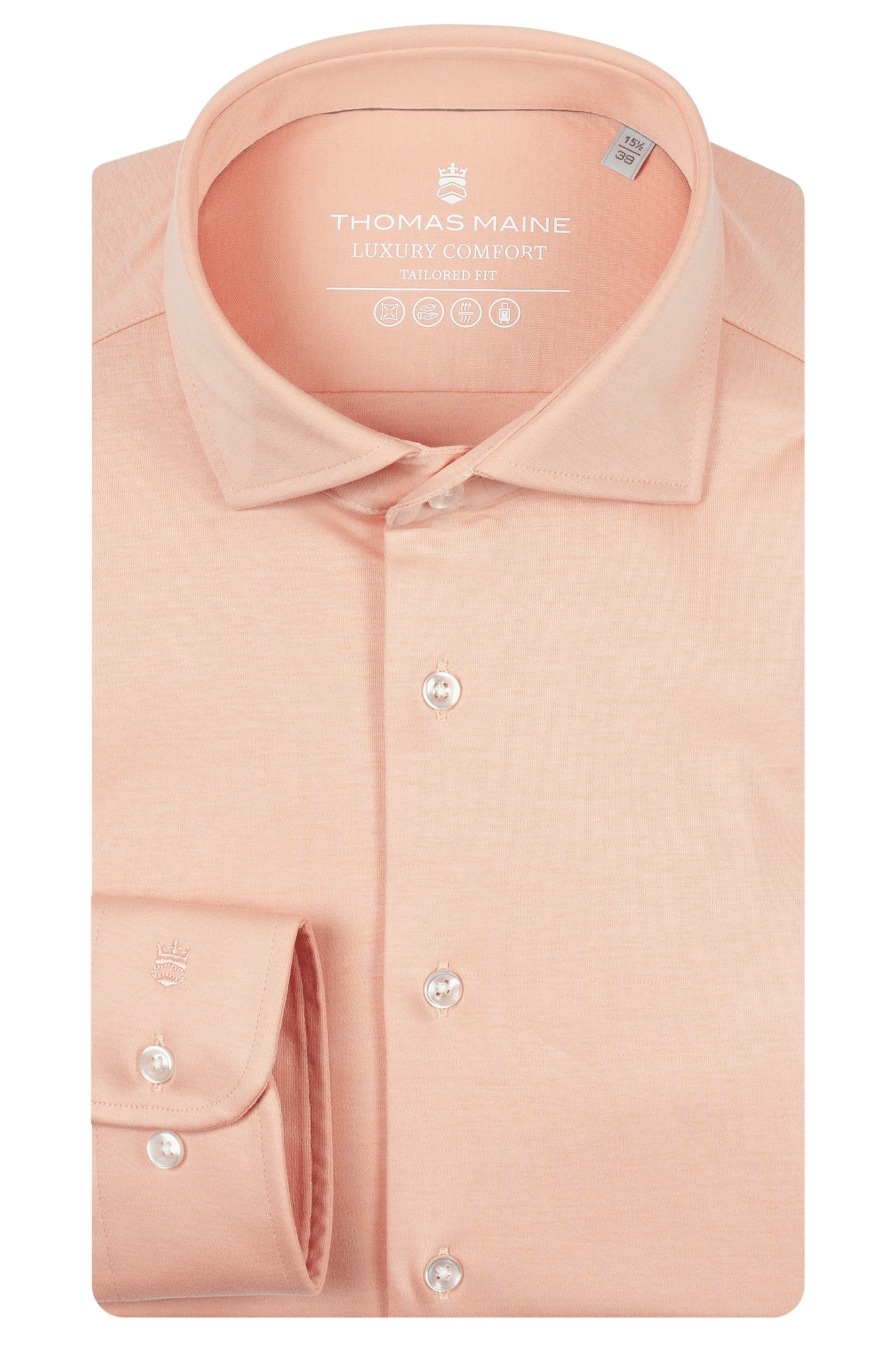 Een tijdloos overhemd dat moeiteloos formeel en casual combineert. Dankzij de luxe Liquid Cotton Solid-jersey stof met stretch zit hij comfortabel en beweeglijk, terwijl de tailored fit de figuur elegant omkadert. De subtiele melange en Kent-kraag maken ‘m veelzijdig: perfect onder een jasje maar ook stijlvol met jeans of chino. Kortom: een shirts dat klasse uitstraalt zonder in te boeten aan draagcomfort.